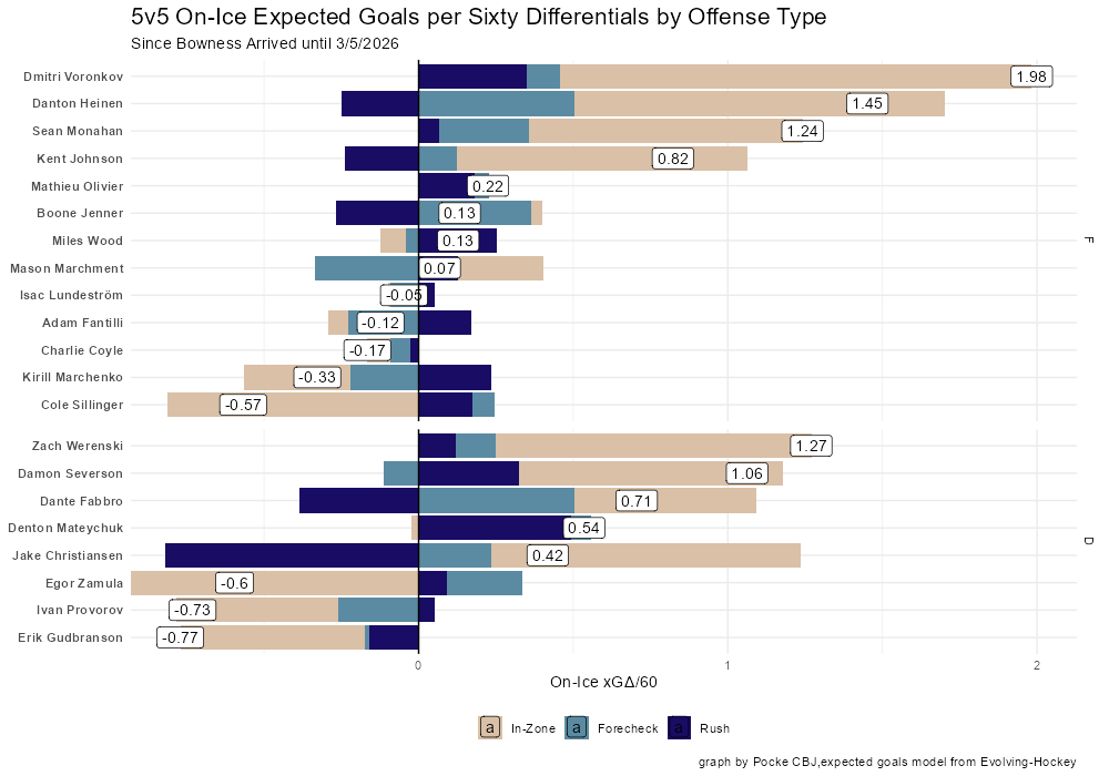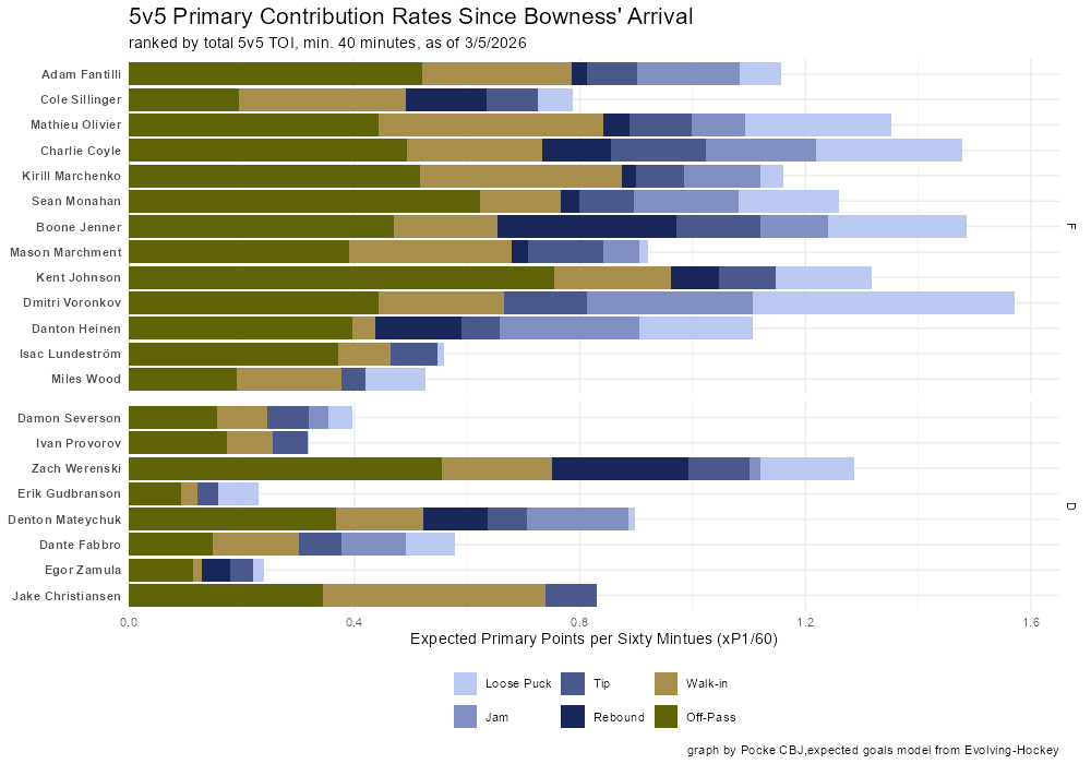 Since Bowness has joined the Blue Jackets, Charlie Coyle ranks 4th in the NHL in 5v5 points/60 (among players with minimum 50 minutes, first among players with 200 minutes). Without Coyle playing the way he has, this season is lost, without him producing since Bowness arrived, the Blue Jackets likely pivot.