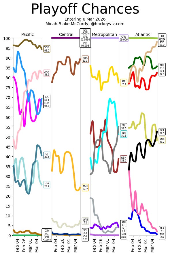 Even before new roster considerations the Blue Jackets had technically taken the lead in terms of HockeyViz’s playoff odds.