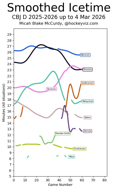 Ivan Provorov remains the gift that keeps on… taking? Gudbranson at 20+ minutes should be a giant flashing warning sign as well but we already knew that this team was going as far as Werenski, and friends, would take it.