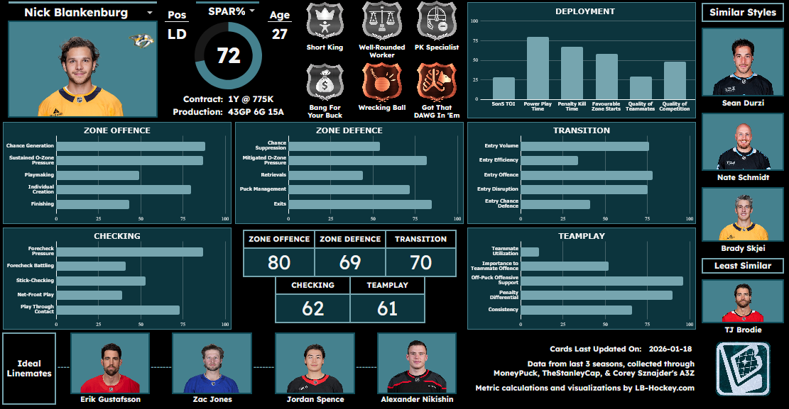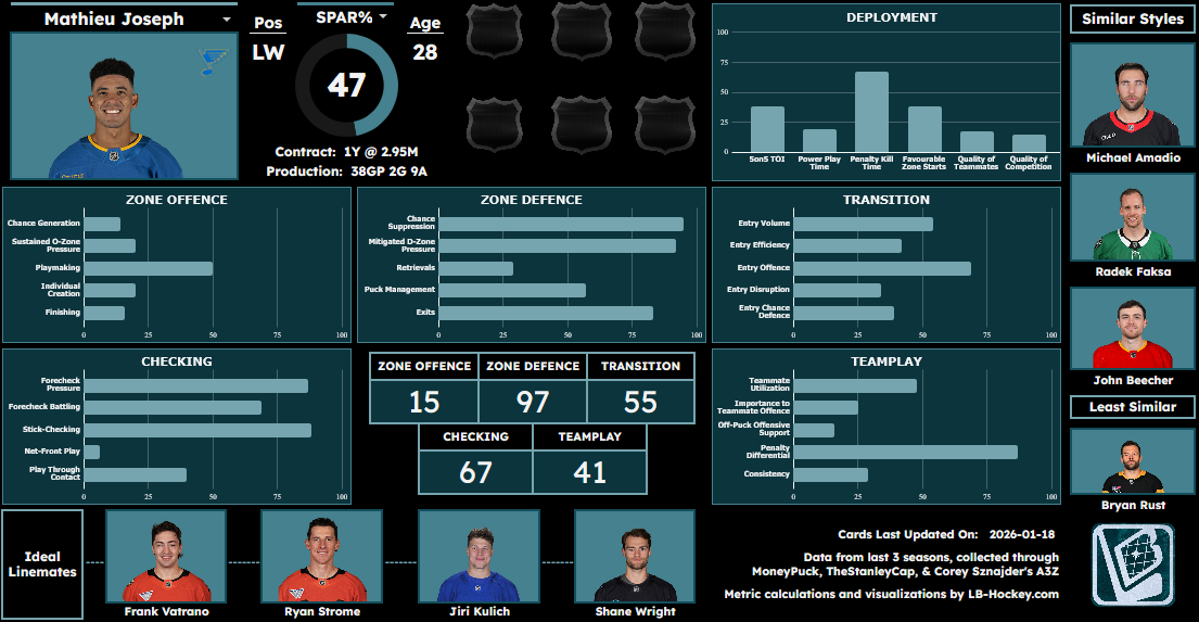 When I think of where he would fit perfectly, it feels more like a Jenner-Monahan-Garland line than it does a KJ-Monahan-Garland line. His game should work alongside the skilled players, and Vancouver is it’s own microchosm and not perfectly generalizable, but he might just be overly puck-touch oriented and with not quite enough off-puck facilitation despite the playmaking.
