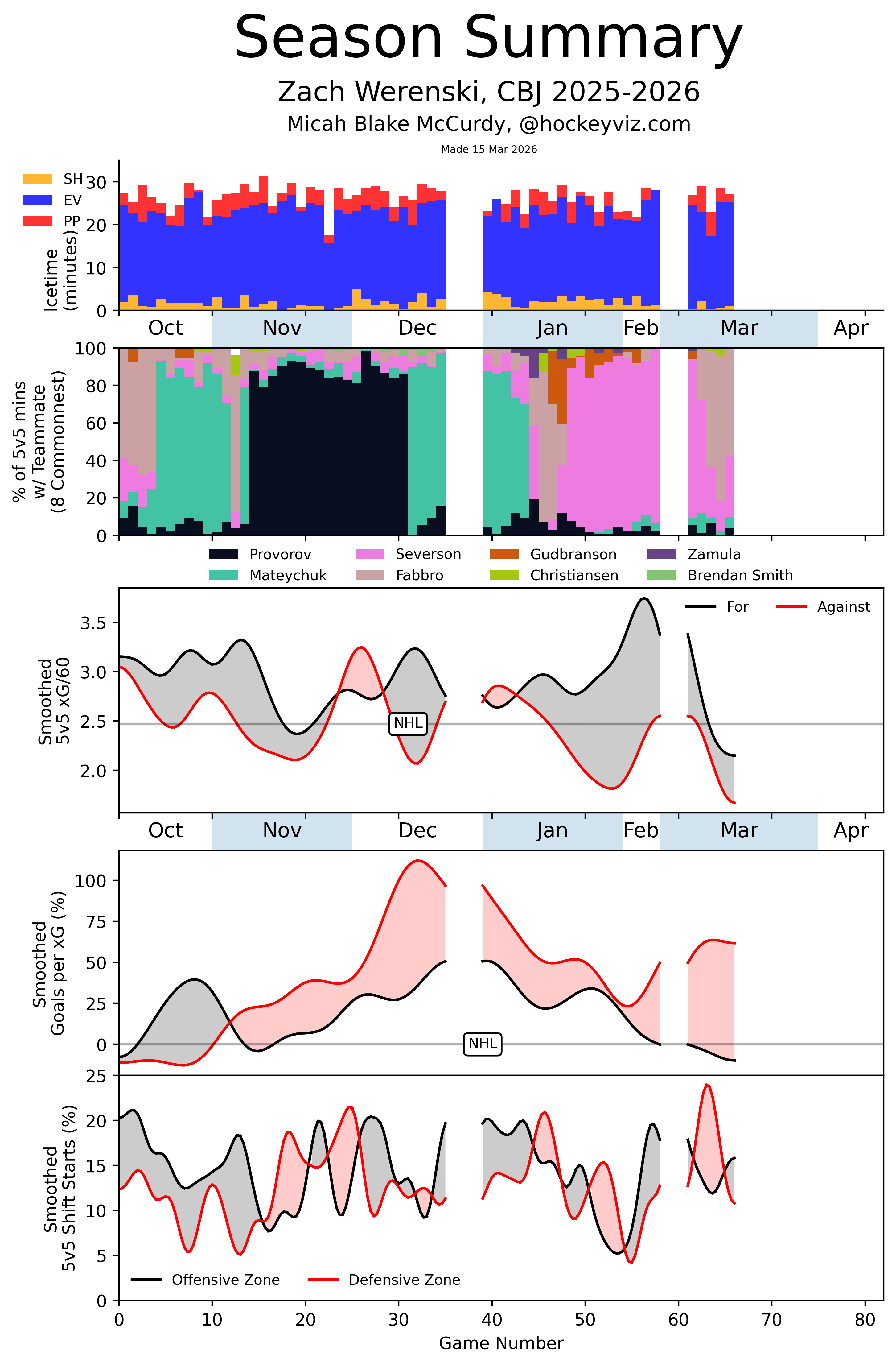 Perhaps the difficult game-states lately have more to do with line construction and ice-time allotment than any Werenski specific factors.